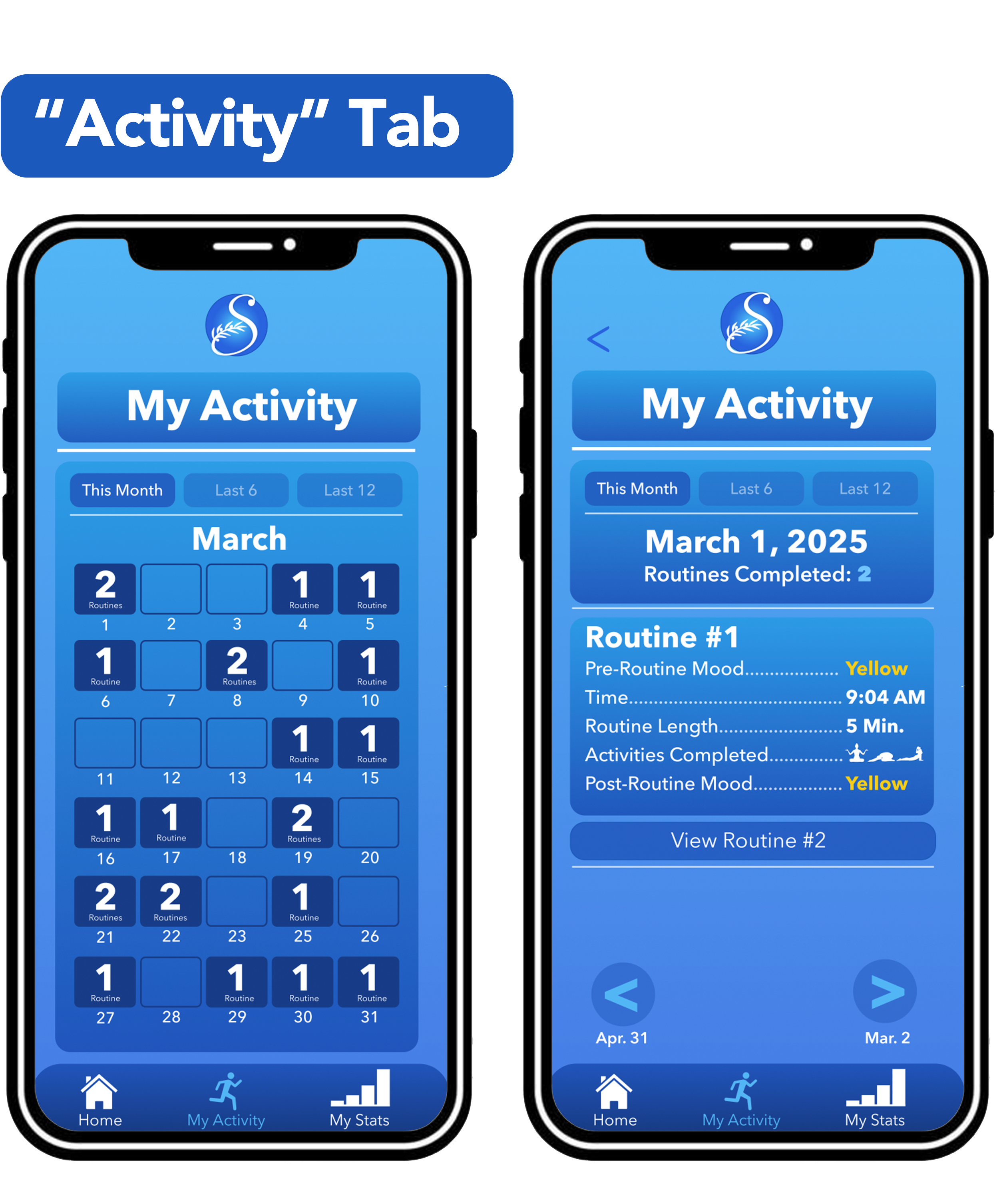 Tracking the frequency with which users complete routines. Users can click on any day of the calendar to see a more in-depth breakdown of the routines they completed on any respective day.