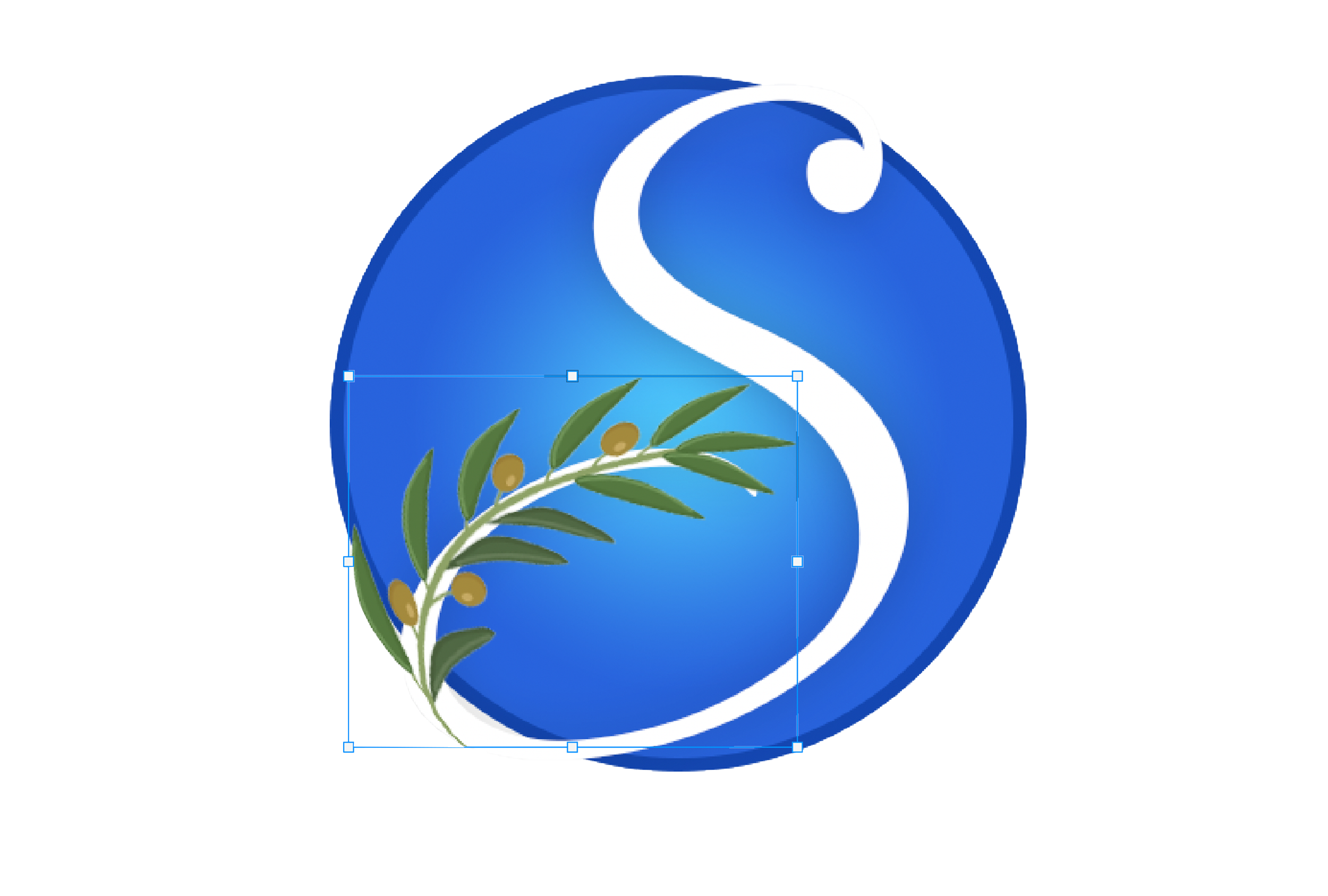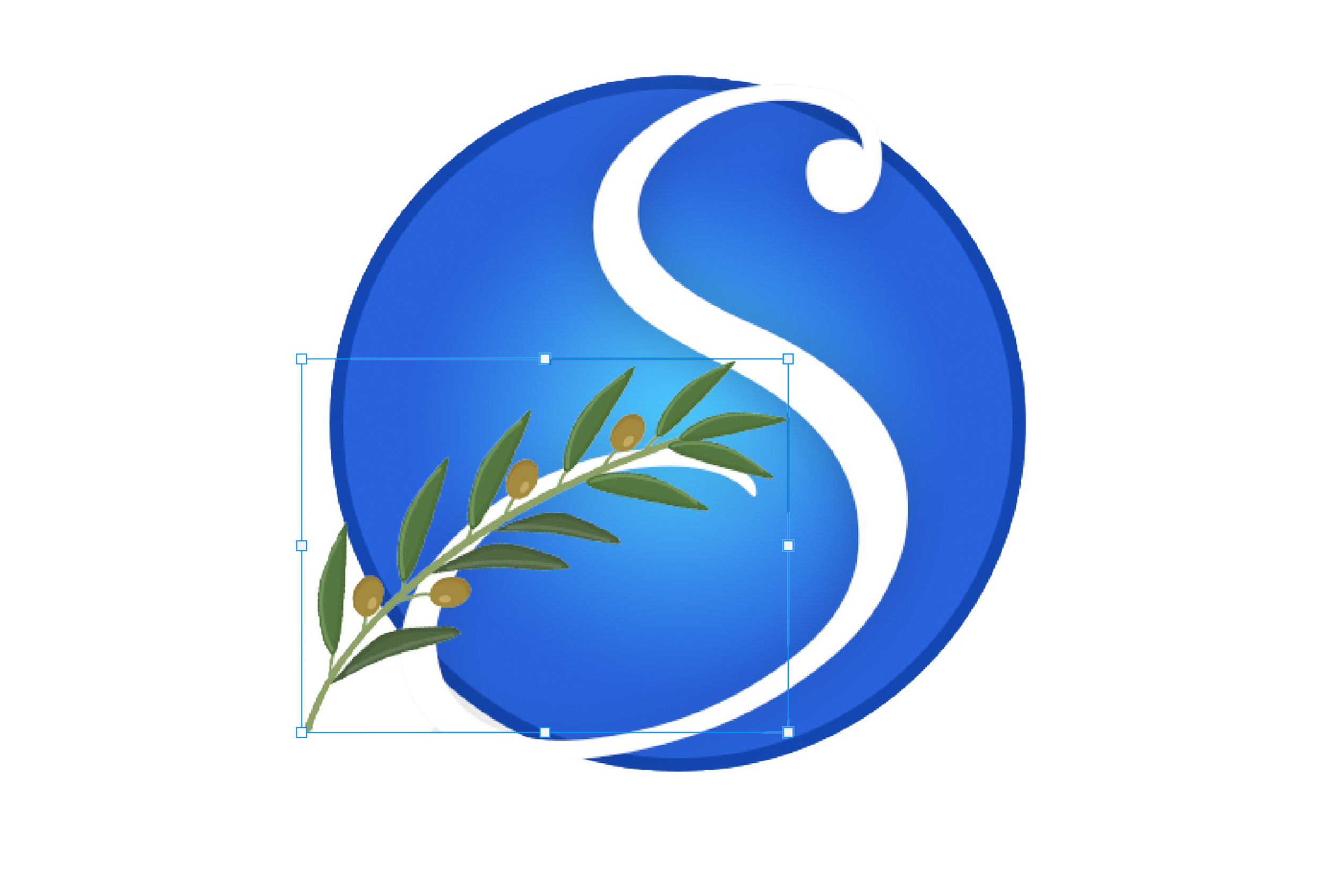 Final solution: Wrapping olive branch around the tail of Stable™ “S.”